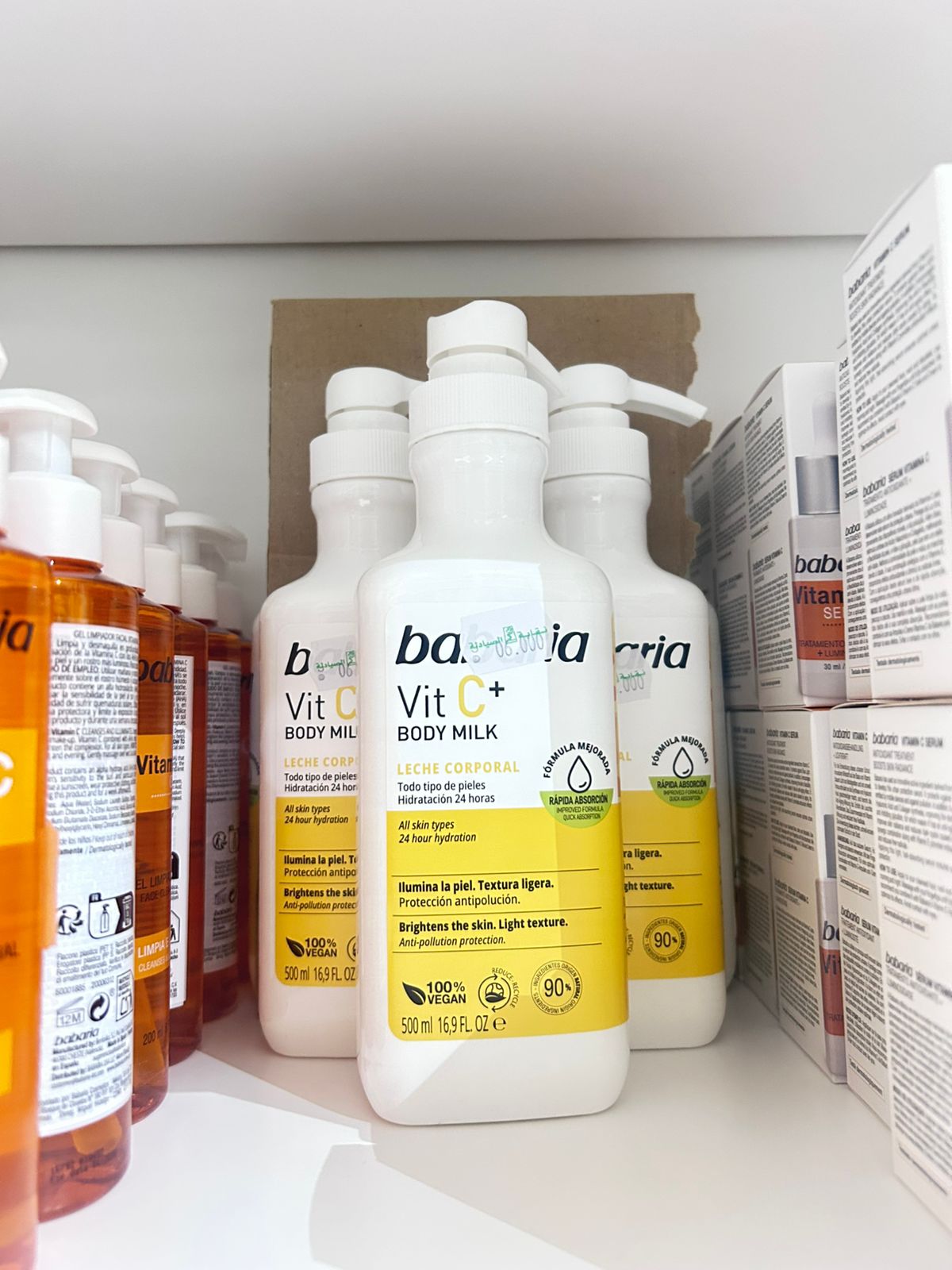 Babaria Vitamin C Body Milk 500ml brightens and moisturises the skin. Its vitamin C-rich formula protects against daily pollution and has an antioxidant effect. Helps to improve skin elasticity and stimulate collagen production. -Skin issues: Dullness, uneven skin tone, dryness, and signs of aging.
