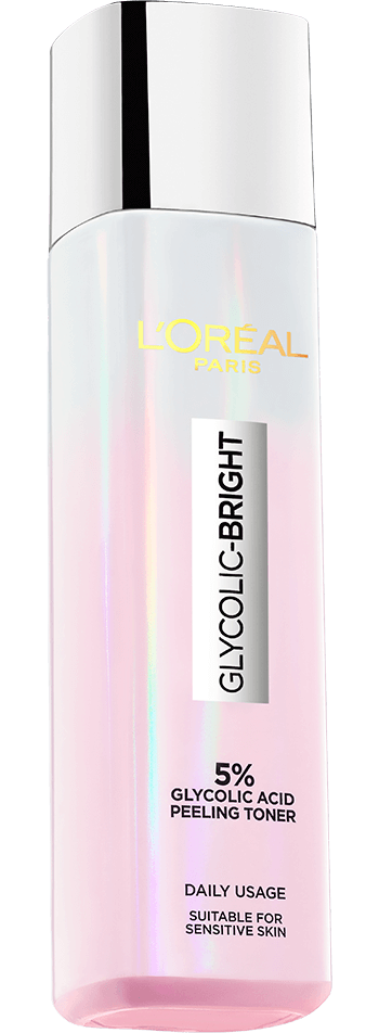 L’Oréal Skincare Laboratories developed GLYCOLIC-BRIGHT GLOWING PEELING TONER formulated with 5% Glycolic Acid, the dermatologist gold standard for professional peels, formulated for optimal efficiency and safety everyday. Clinically proven to reveal purified, fresh and glowing skin. Tested by dermatologist on all skin tones.