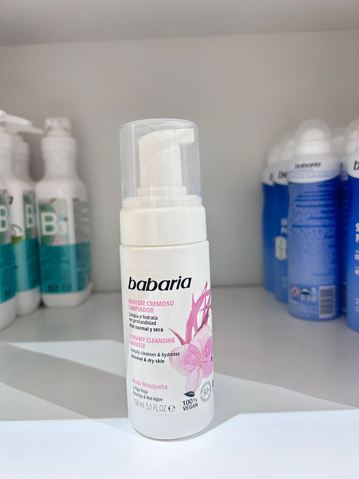 Babaria Creamy Cleansing Mousse 150Ml Containing rosehip and red algae extract, it deeply and delicately cleanses the skin. Its mousse texture offers intense hydration, leaving the skin looking velvety.