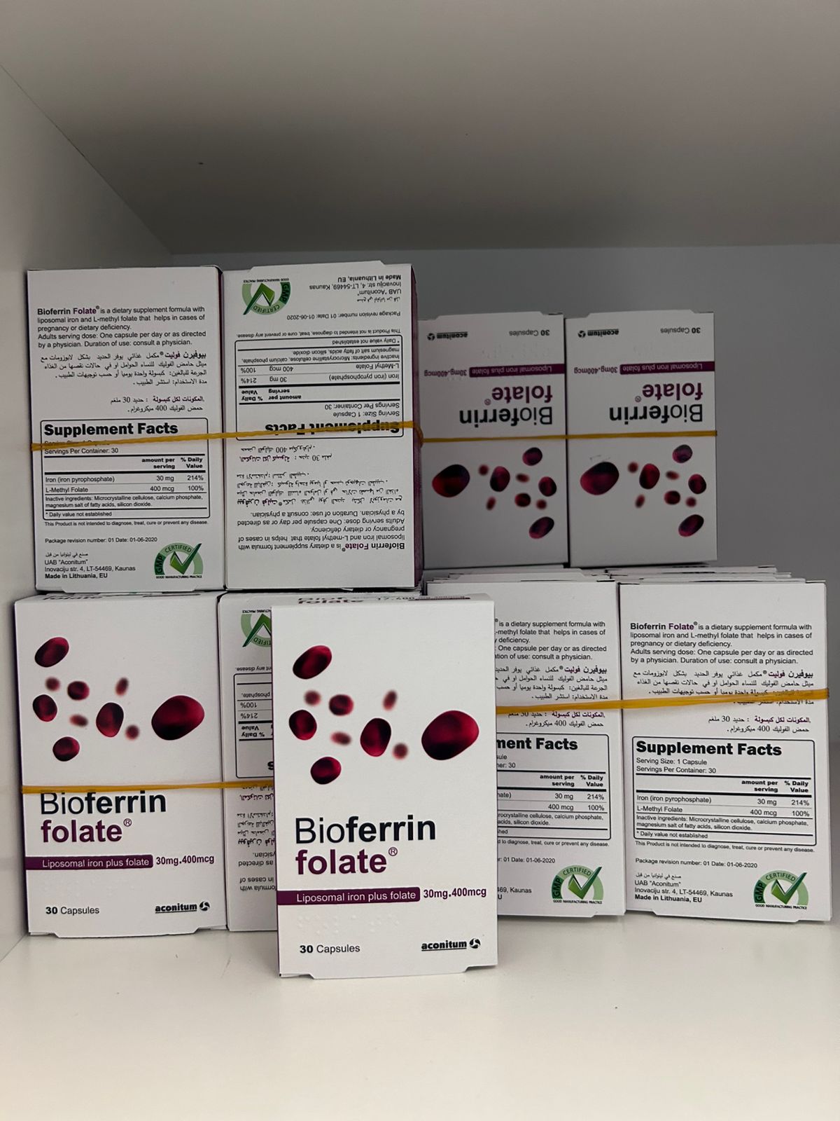 Bioferrin Folate 30 Capsules هو مكمل غذائي مميز يجمع بين اللاكتوفيرين وحمض الفوليك لدعم صحة الدم وتعزيز مستويات الحديد بشكل طبيعي وآمن. يساعد المنتج في تحسين امتصاص الحديد وتقليل خطر الإصابة بفقر الدم الناجم عن نقص الحديد أو حمض الفوليك. يعد خياراً مثالياً للحوامل، النساء في سن الإنجاب، والأشخاص الذين يحتاجون إلى دعم إضافي لمستويات الحديد في الجسم، مع تقليل الآثار الجانبية المرتبطة بمكملات الحديد التقليدية.