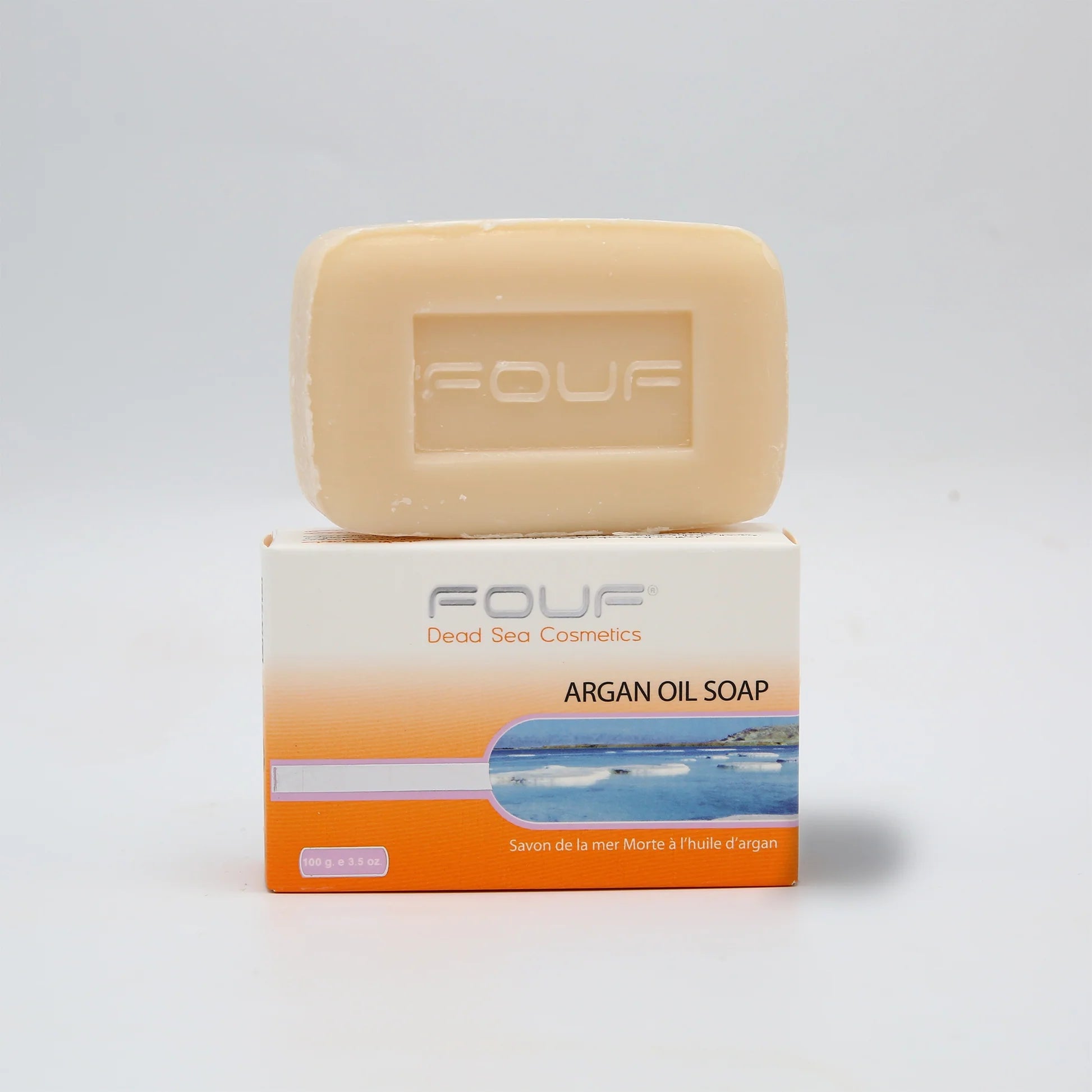 - FOUF Argan Oil Soap is a combination of Dead Sea Minerals which was formed through ages of time, and amazing natural ingredients such as Argan oil, Olive oil, Grape seed oil, and Glycerin.