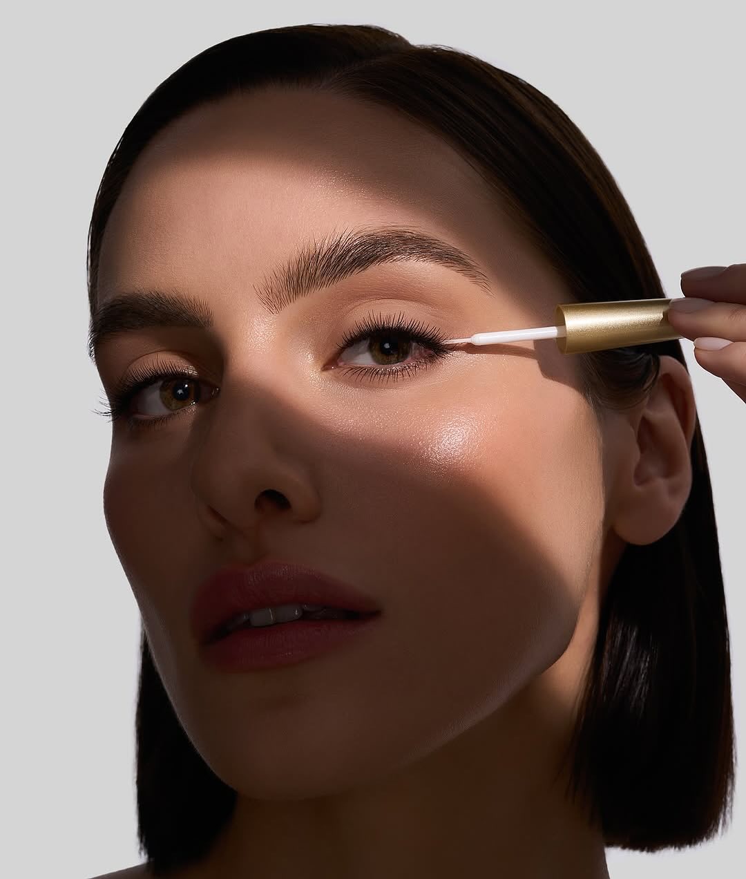 Hyaluronic acid that nourishes and smoothens the surface of eyelashes. Provitamin B5 that penetrates the eyelash fibers, improves their structure, making them stronger, more flexible, and shiny. Allantoin that prevents potential irritations and redness.
